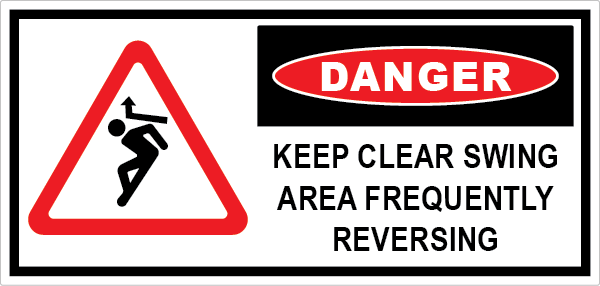 KEEP CLEAR SWING AREA FREQUENTLY REVERSING